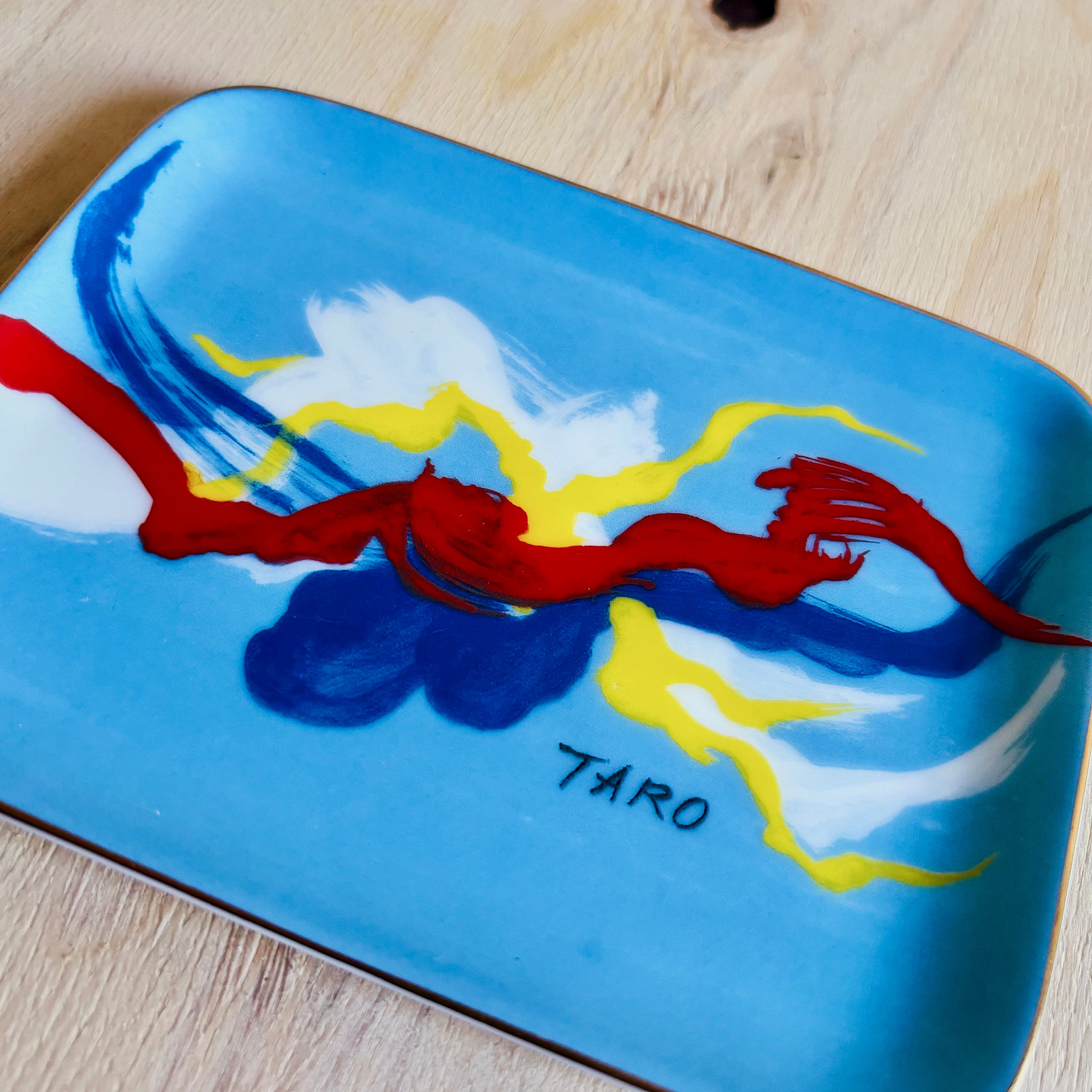 ~太郎が1977年に制作した「飛翔」をあしらった絵皿~