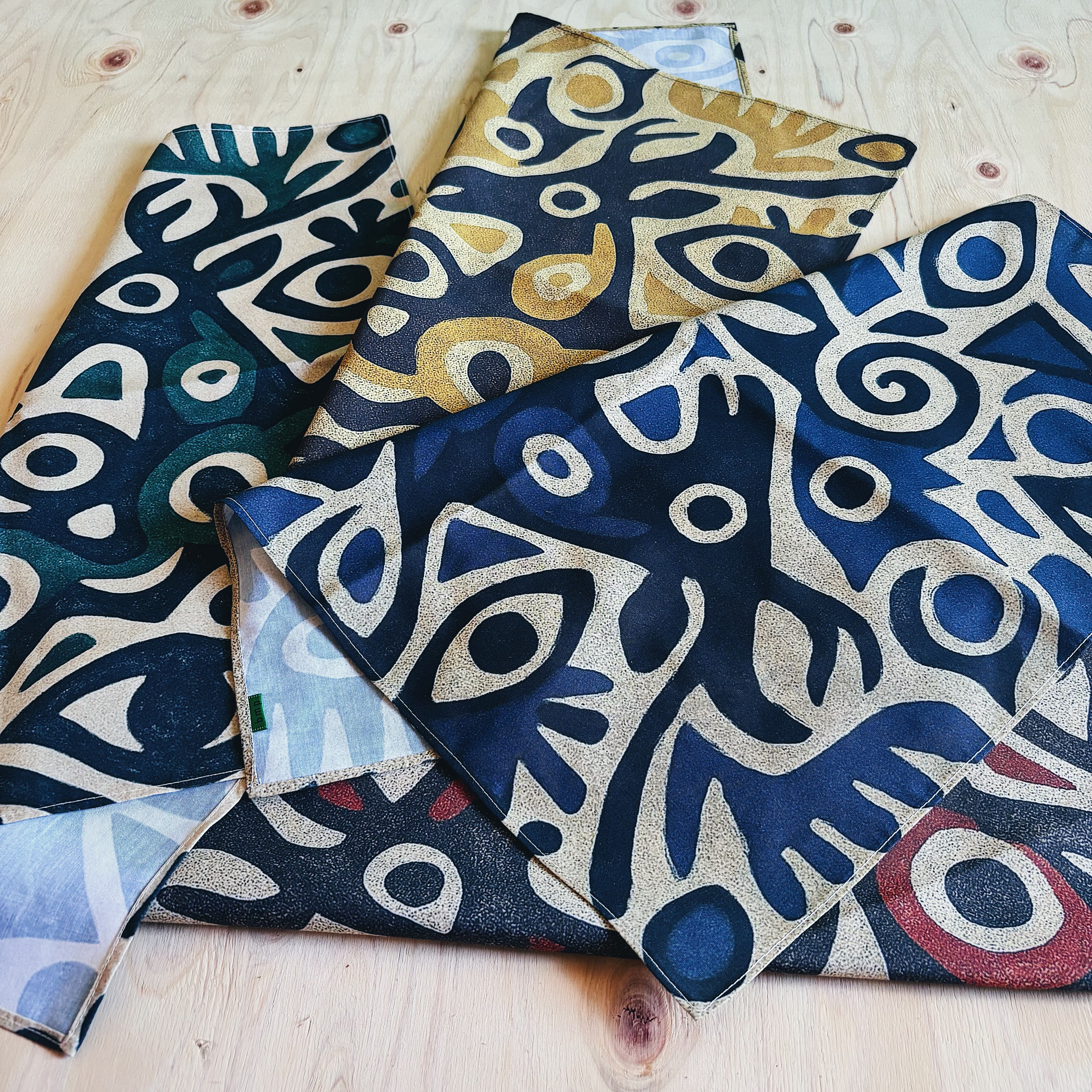 素材には、発色が美しくハリのあるブロード生地を使用。軽やかな質感で扱いやすく、首元・頭・バッグ・インテリアと、自由な使い方ができる一枚です。