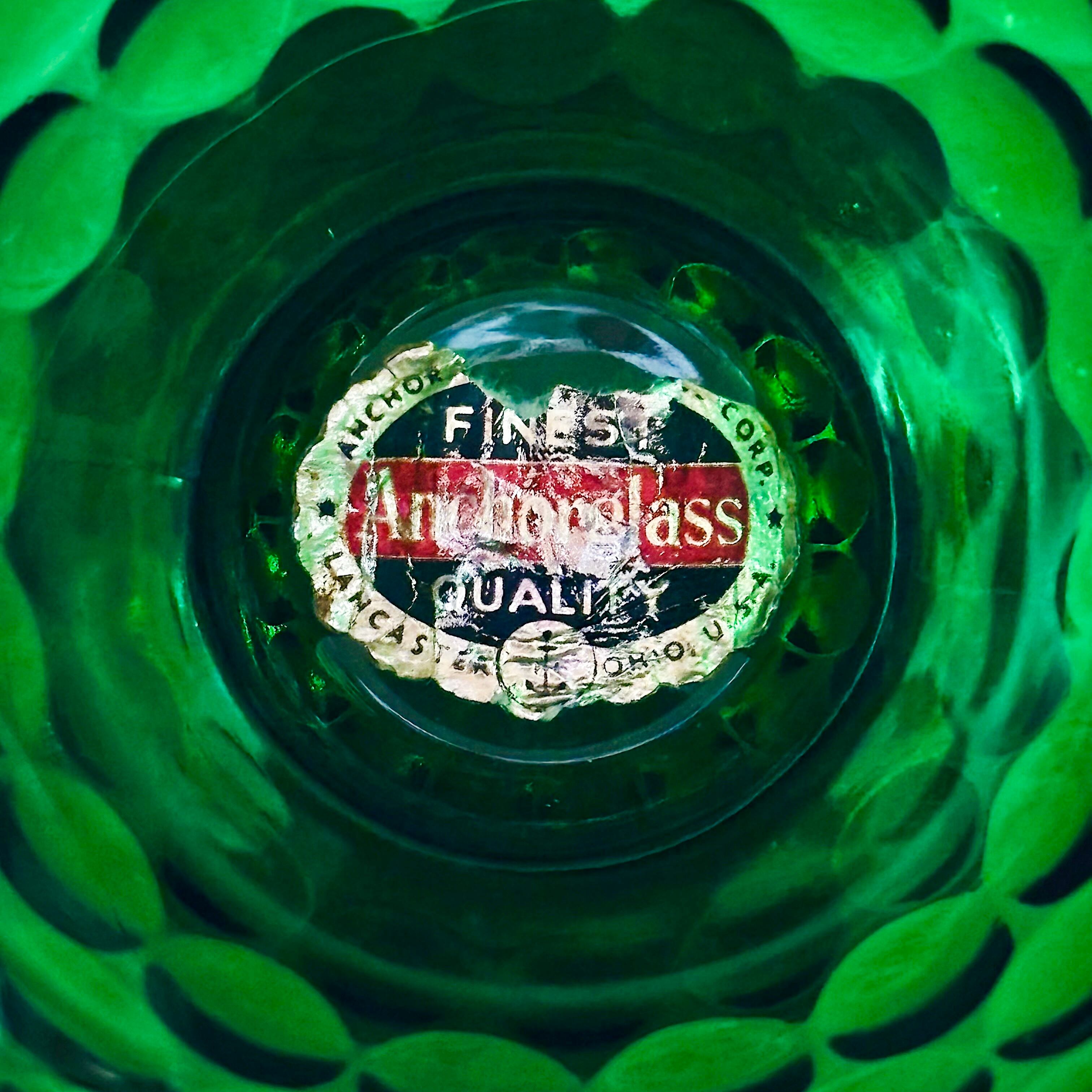 当時物のラベル付き/非常に良好なヴィンテージコンディション。ヒビや欠けは見られず、全体にツヤがあります。製造時の気泡やわずかな練りムラ等は、古いガラス製品の個性としてご理解ください。