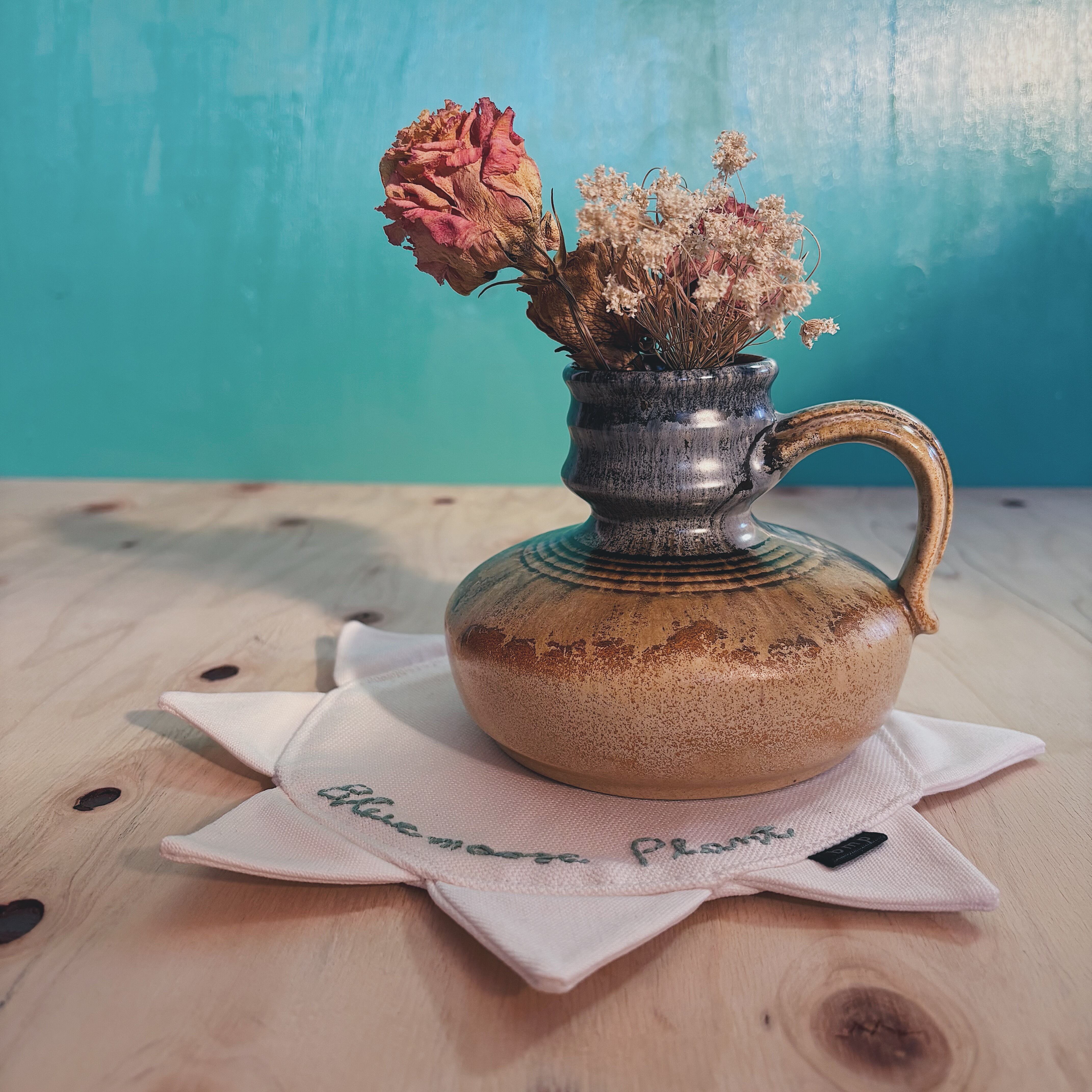 厚みのあるキャンバス生地を使用し、やわらかさと安定感を両立。ランチョンマットとしてはもちろん、コーヒー器具の下敷きや、花器・オブジェの台座としてもお使いいただけます。