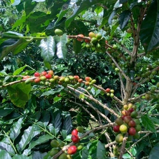 インドネシア・スマトラ島北部、マンデリンの産地として知られるこの地で、クオリティの高さが評価されたロットが“Harapan(希望)” と呼ばれています。このハラパンが育つ生産地は、これまで見てきたどのマンデリン生産風景とも異なる、深い森のような環境にあります。樹齢数十年に及ぶコーヒーの樹々が生い茂り、足元にはふかふかとした腐葉土。人の手が過度に入らない環境で育った原料は、通常のマンデリンとは一線を画す、芯のある風味を備えています。